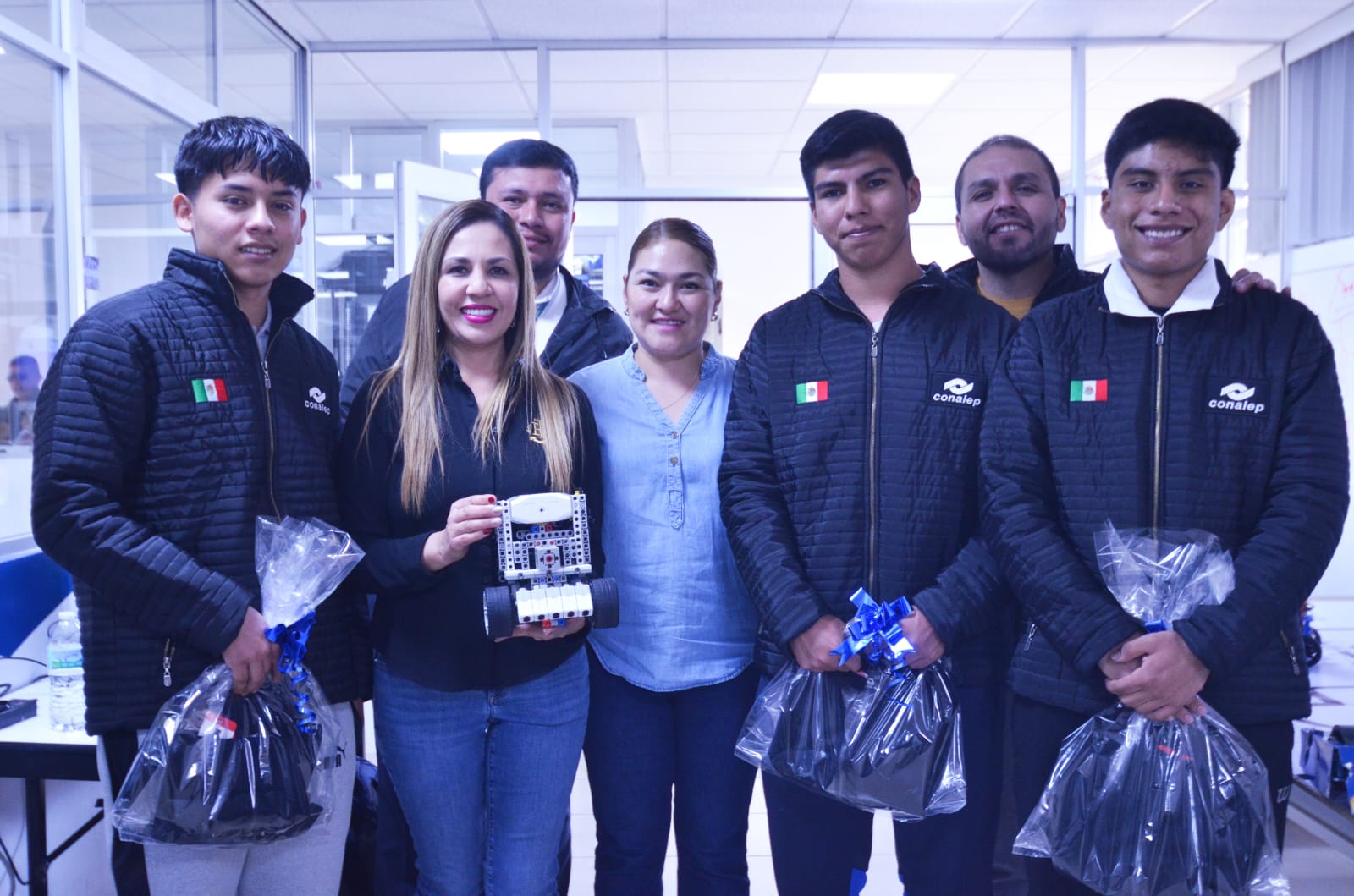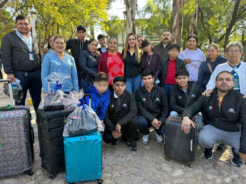 Melanie Murillo, presidenta municipal de Silao, despidió a los jóvenes y al coach del CONALEP que representarán al municipio y a México en el campeonato mundial WER de robótica y programación, en Shanghái, China.