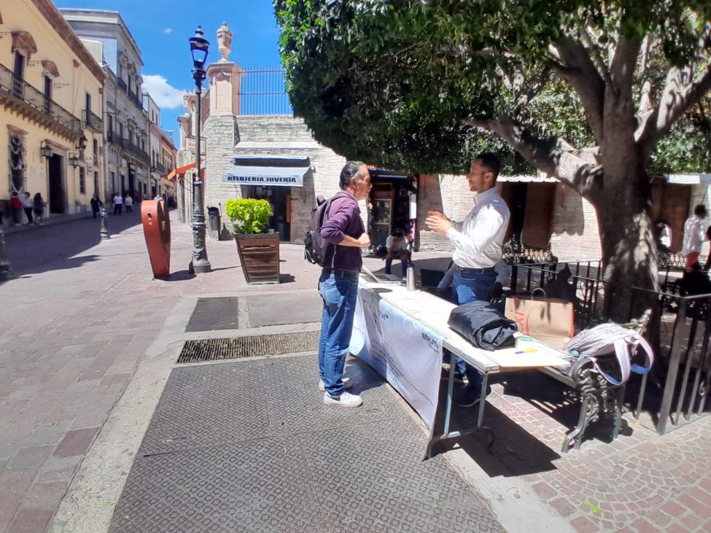 Como parte del proceso de participación ciudadana que el Gobierno Municipal de Guanajuato promueve para revisar y retroalimentar el Programa Municipal de Desarrollo Urbano y Ordenamiento Ecológico Territorial (PMDUOET), se instaló una mesa de orientación y recepción de opiniones en la plaza del Truco, frente a la Presidencia Municipal.