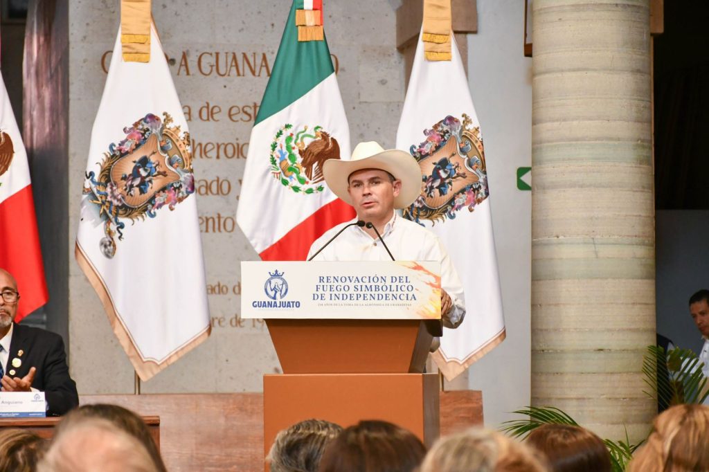 En la ceremonia celebrada este 28 de septiembre para renovar el Fuego Simbólico de la Libertad, Navarro celebró que la gobernadora, Libia Dennise García Muñoz Ledo, inauguró con el Gobierno de la Gente una nueva etapa en la historia de México y del estado.